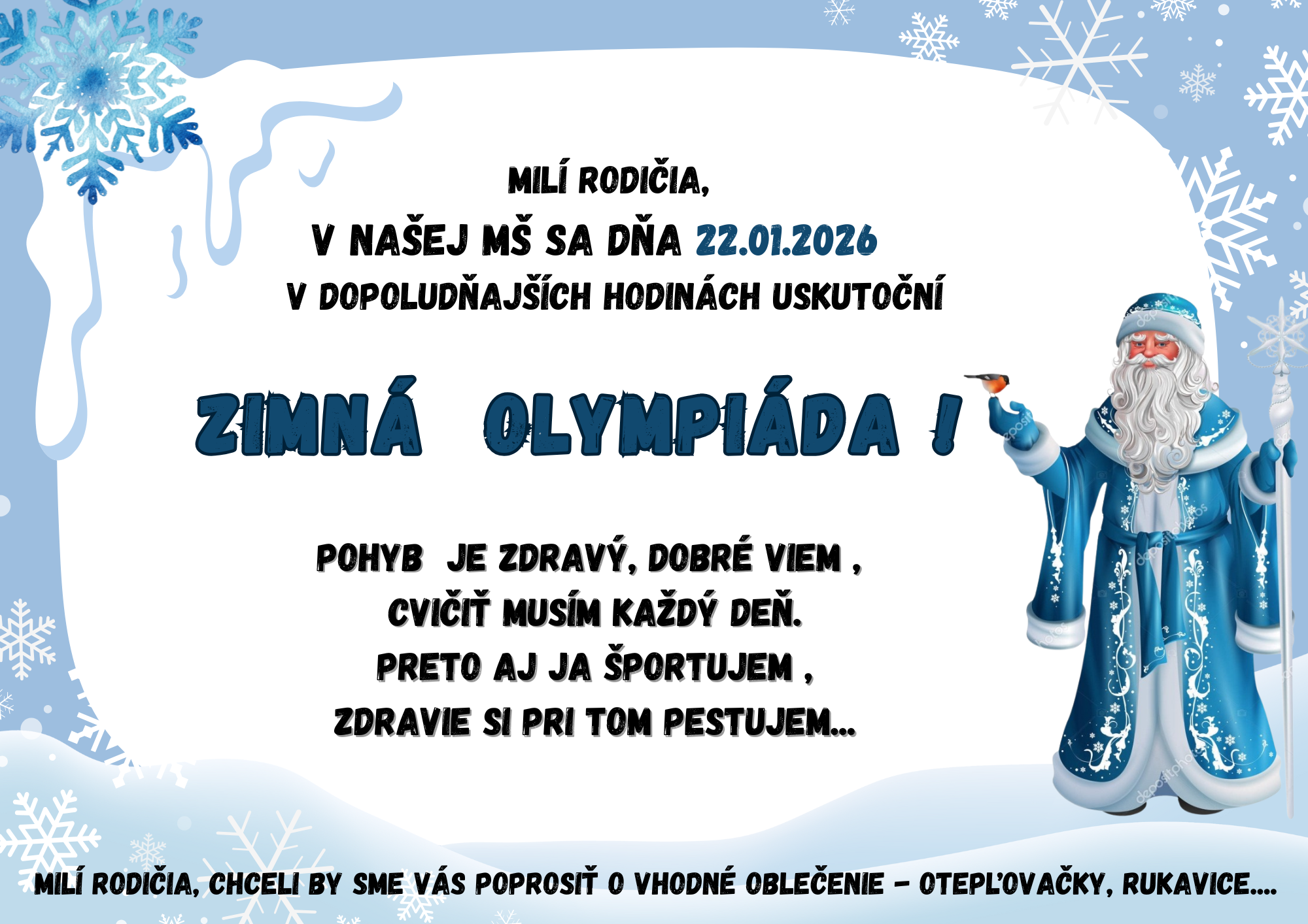 preto našej zimnej olympiáde 22.01.2026 trikrát ,, hurá“ povieme.