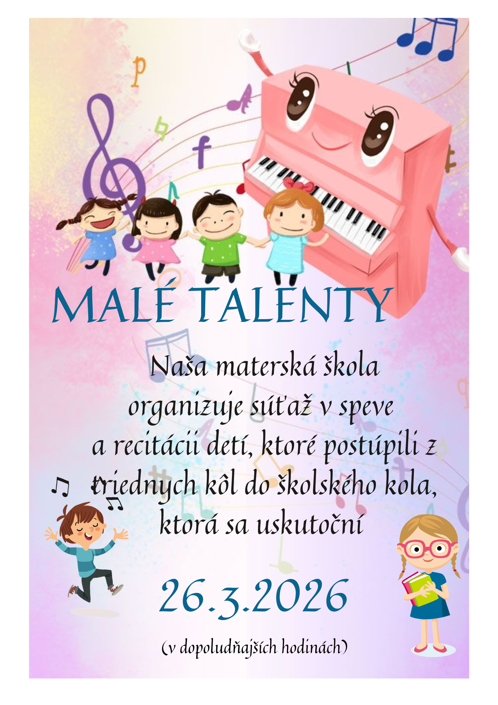 Naša materská škola organizuje súťaž v speve a recitácií detí,